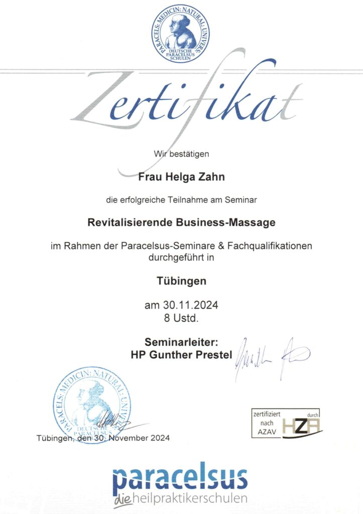 Schon als ich die ersten Schritte in Richtung Massage ging, das war bei meinem Dorn-Breuss-Kurs, machte sich dieses Gefühl breit. Je mehr ich davon lerne und je tiefer ich in die Materie eintauche, desto sicherer bin ich. Das will ich tun! Anderen Gutes tun, sie von Alltagsbeschwerden befreien und in die Welt der Entspannung eintauchen zu lassen.